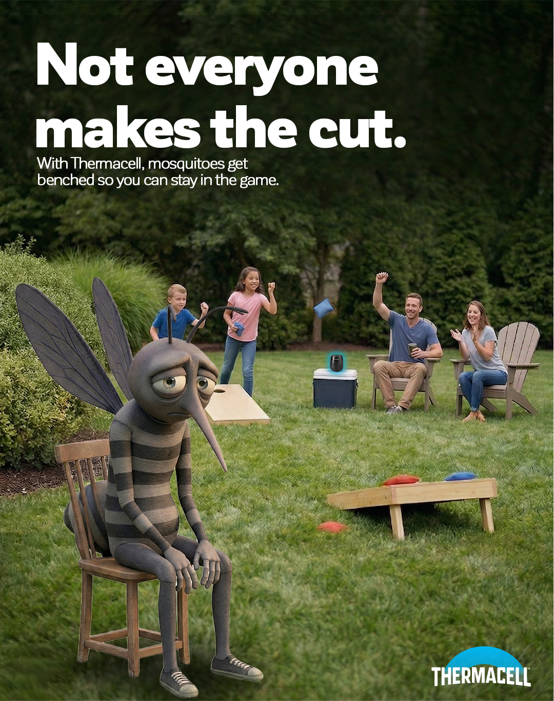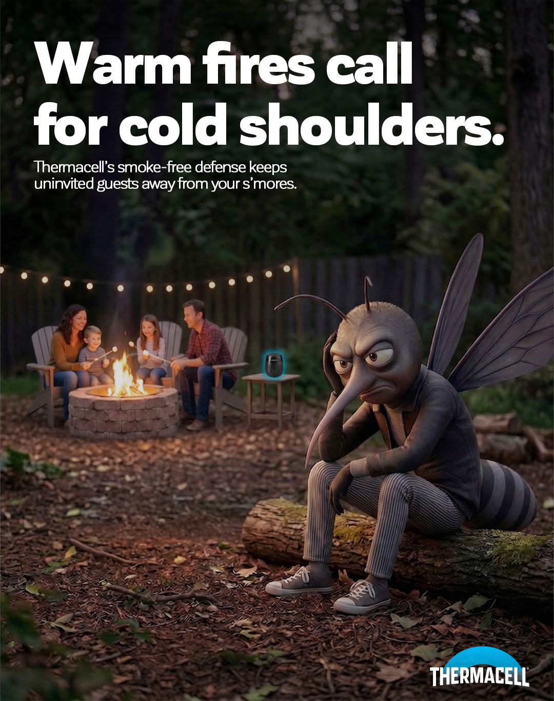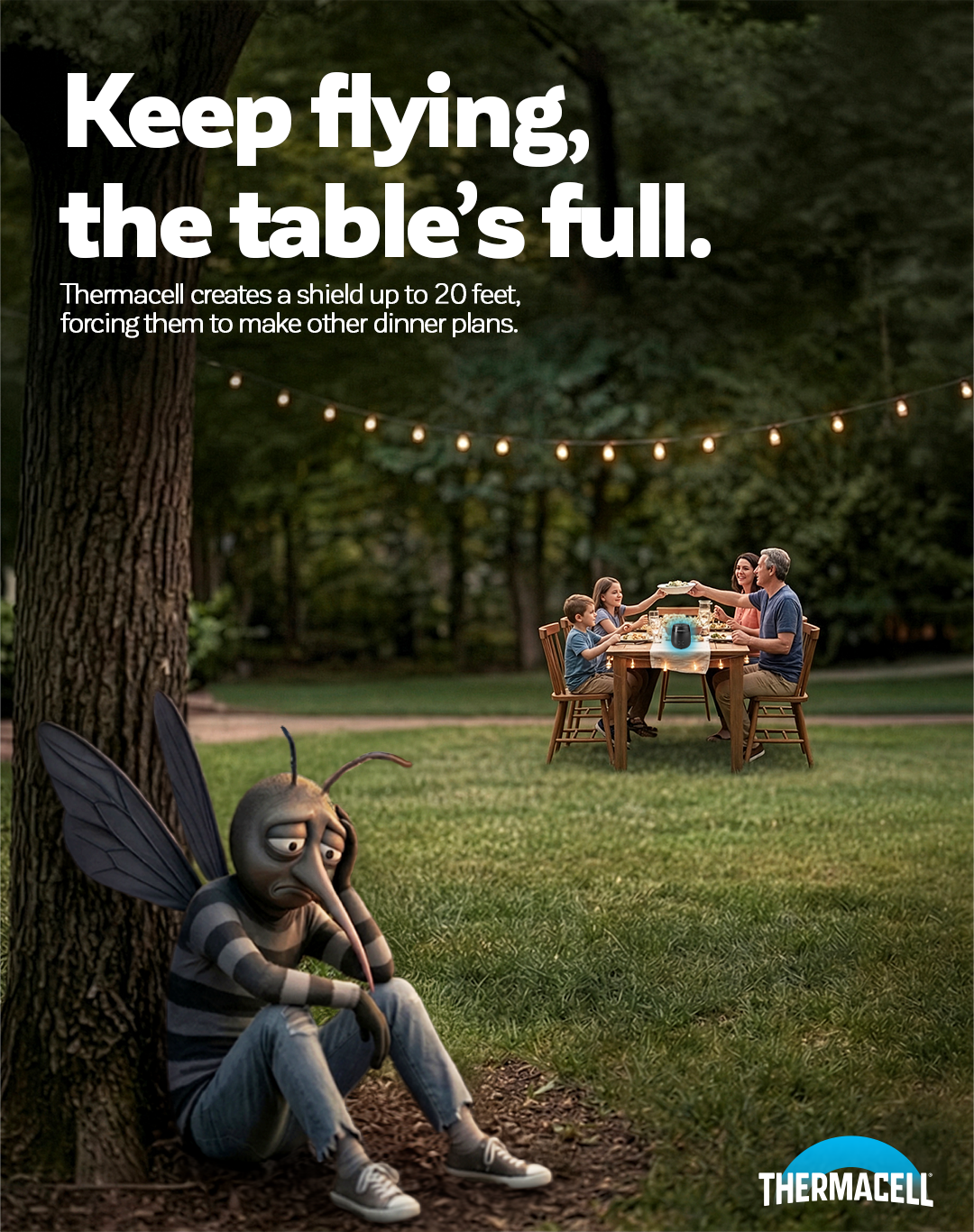 Thermacell makes mosquito repellent technology that protects outdoor moments with ease. This campaign builds on that by introducing a mosquito mascot, created using AI as a creative tool to make on brand visuals that bring the product to life.
